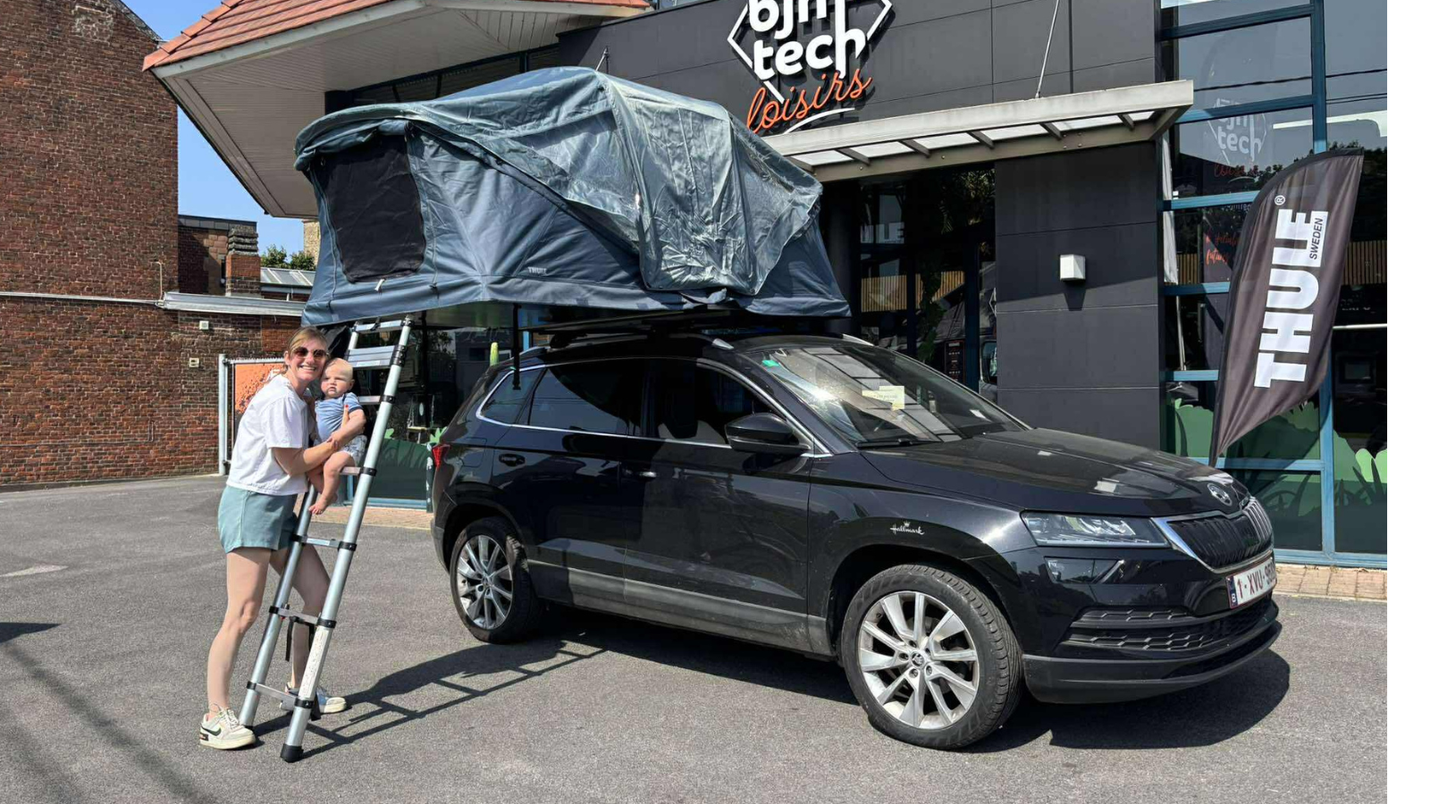 Le montage se fait sur barres de toit ou galerie (minimum deux points de fixation). Nous proposons un placement en atelier soigné et garanti, avec écolage à l’utilisation de l’auvent (forfait main-d’œuvre ±150 €). Infos ou rendez-vous : info@bjmtech.be ou 071 59 29 49.