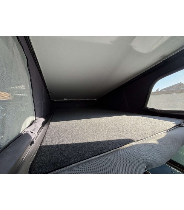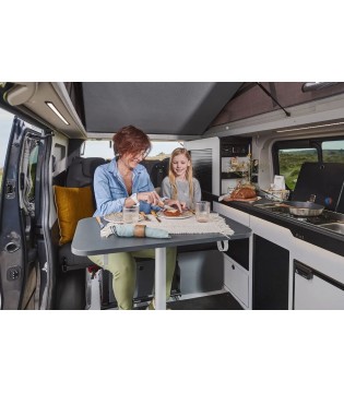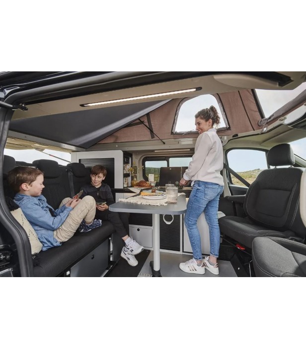 À l’intérieur, la banquette arrière coulissante transforme l’espace en un véritable salon convivial, parfait pour partager un repas ou discuter autour de la table modulable. Le soir venu, cet espace se métamorphose en un lit confortable pour deux, tandis qu’un second couchage se déploie sous le toit relevable isolé, offrant une literie agréable pour deux autres personnes. Avec ses moustiquaires intégrées pour la porte latérale et l'hayon, les nuits sont calmes, fraîches et sans insectes, même en plein été. 510L d'espace de rangement vous permettent de ranger facilement vos affaires.