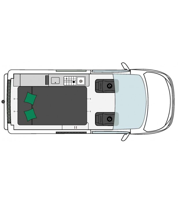 Ce van se distingue par sa capacité d’autonomie renforcée, pensée pour des voyages prolongés. Avec un réservoir d’eau propre de 65 litres et un réservoir d’eaux usées de 35 litres, il permet de s’éloigner des sentiers battus en toute tranquillité. Son chauffe-eau intégré de 8 litres garantit un confort thermique pour les douches ou la vaisselle, tandis que sa batterie lithium de 100 Ah et son panneau solaire performant de 190W assurent une alimentation énergétique durable et fiable, même en pleine nature.