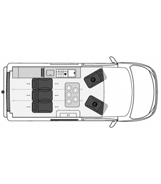 À l’extérieur, ce van se dote d’un auvent latéral spacieux et d’une tente arrière, parfaits pour agrandir l’espace de vie. Une boule d’attelage et un porte-vélos basculant permettent de transporter deux vélos pour des aventures encore plus actives. Livré avec une table et deux chaises d’extérieur, le Flex 5 invite à profiter pleinement des moments en plein air.