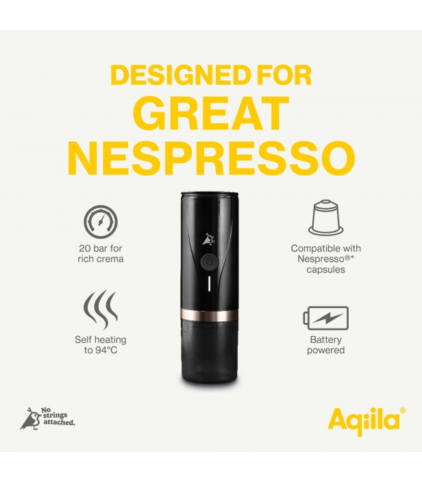 Savourez un véritable café expresso où que vous soyez ! Compacte, élégante et totalement autonome, la Coffeebird prépare un café riche et onctueux en un seul geste. Grâce à sa pression de 20 bars, son chauffage intégré à 94 °C et sa batterie 7500 mAh, elle vous offre un expresso parfait à tout moment, sans avoir besoin d’électricité. Compatible avec capsules Nespresso® et café moulu, elle est idéale pour les voyages, la vanlife, le bureau ou les pauses en plein air.