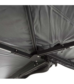 L’auvent latéral VICKYWOOD LEAF EXTENDED 450° offre une protection étendue sur le côté et à l’arrière du véhicule, idéale pour le bivouac, le camping ou les expositions.