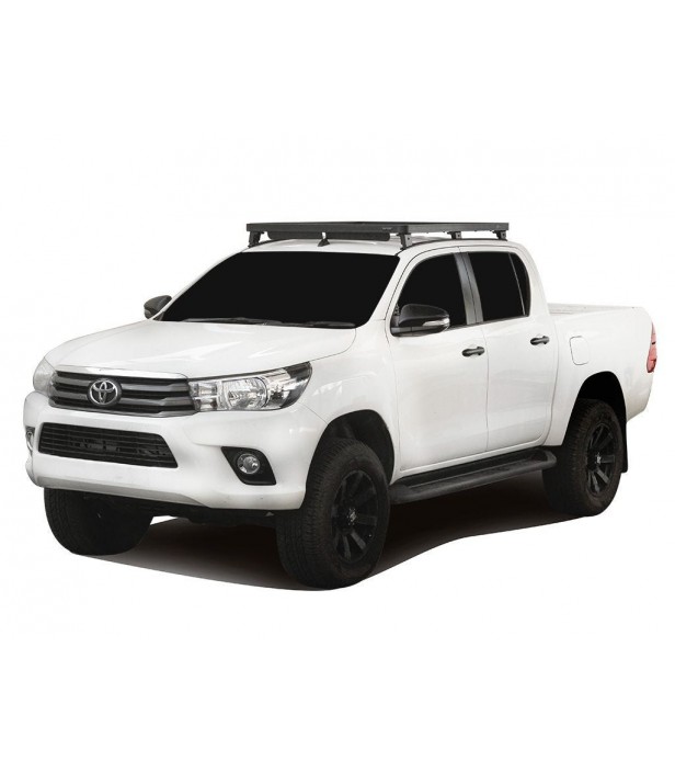 Ce kit Slimline II est spécifiquement conçu pour le Toyota Hilux Revo Double Cab (à partir de 2016). Il se compose d’un plateau Slimline II monté sur des rails Front Runner dédiés, associés à six pieds de fixation assurant une excellente répartition des charges sur le toit.