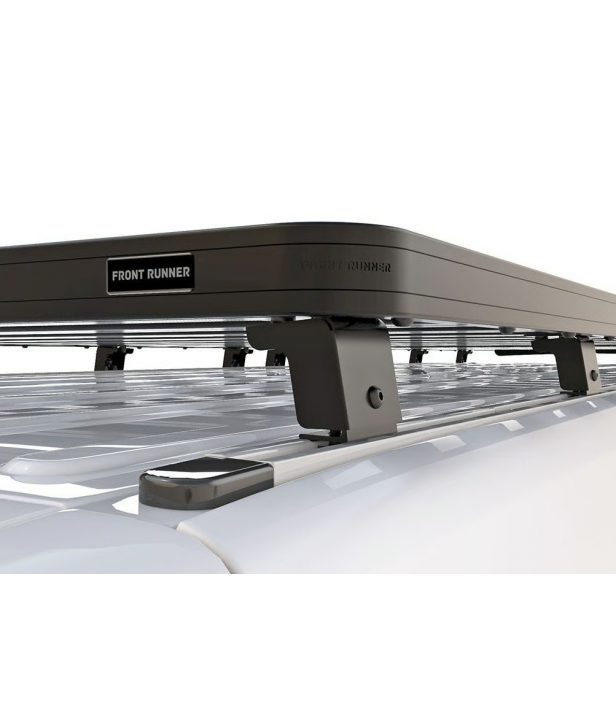 Elle est compatible avec une large gamme d’accessoires Front Runner : panneaux solaires, coffres de toit, jerrycans, roues de secours, échelles, barres LED, auvents, supports vélo ou équipements techniques spécifiques. Le système de fixation en rainures en T permet un aménagement entièrement modulable et évolutif.