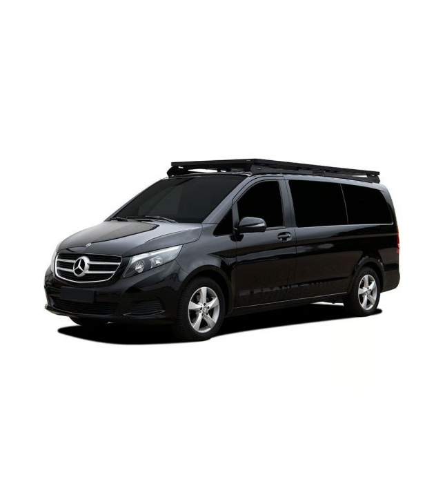 Ce kit Slimline II est spécifiquement conçu pour la Mercedes-Benz V-Class L2 / Metris 126" WB (à partir de 2014). Il se compose d’un plateau Slimline II de 1425 mm x 2772 mm monté sur deux foot rails dédiés, assurant une excellente répartition des charges sur toute la longueur du toit.