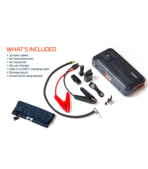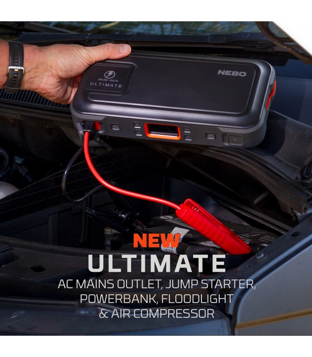 Polyvalent, puissant et compact, le NEBO ULTIMATE combine une batterie 15 000 mAh, un démarreur 12 V, un compresseur numérique 130 psi, une sortie 230 V AC, l’USB-C Power Delivery et l’USB-A haute vitesse. L’outil indispensable pour les automobilistes, campeurs et aventuriers.