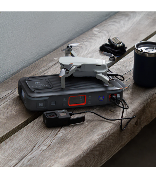 Recharge rapide pour smartphones, tablettes, ordinateurs compatibles et accessoires. Un port USB-A 5 V / 2,4 A permet d’alimenter vos appareils du quotidien. Grâce à sa grande capacité, le NEBO ULTIMATE offre jusqu’à 5,6 charges de smartphone, 2,1 charges de tablette, 1,6 charge de laptop, 37 charges de casque audio, 3 charges de drone ou 10 h d'alimentation pour une lampe ou un routeur.