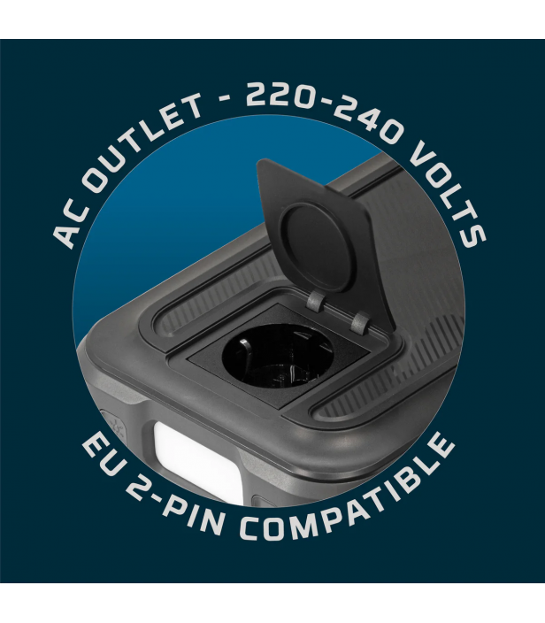 La sortie AC intégrée permet d’alimenter vos appareils en déplacement : TV (60 W), petits outils, éclairages, matériel photo/vidéo, équipements de bureau ou de camping.