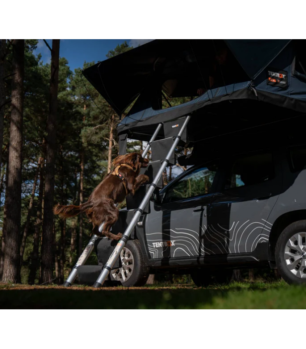 Cette plaque en alu est un simple moyen de tenir votre chien adoré près de vous lors de vos escapades en voiture, motorhome, caravane, tente de toit, ...