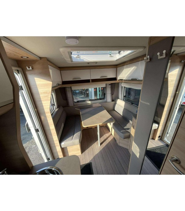 Une superbe caravane avec lits jumeaux transformables en lit king size et banquette en U