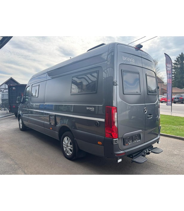 Découvrez ce Bravia Swan 699 de 2023, immatriculé le 22/06/2023, un fourgon aménagé haut de gamme offrant 2+1 couchages et seulement 13.000 km. Construit sur base Mercedes Sprinter 2.0L de 150 ch avec boîte automatique 9G-Tronic, il combine confort de conduite, fiabilité et prestations premium. Avec un PTAC de 3.500 kg, il est accessible avec un permis B. L’espace de vie propose un salon spacieux et modulable, une cuisine entièrement équipée, un couchage confortable et une grande salle de bain avec douche séparée. Ce modèle bénéficie d’un équipement de base complet ainsi que de nombreuses options déjà installées.