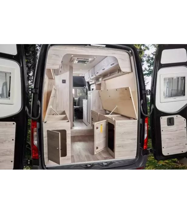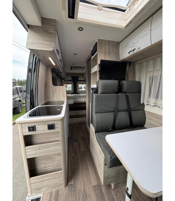 Confort absolu avec salon spacieux, cuisine équipée, lit confortable, grande salle de bain avec douche et nombreux rangements. Idéal pour courts et longs voyages en toute sérénité.