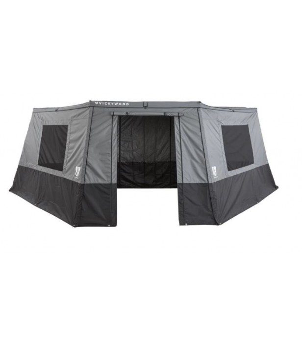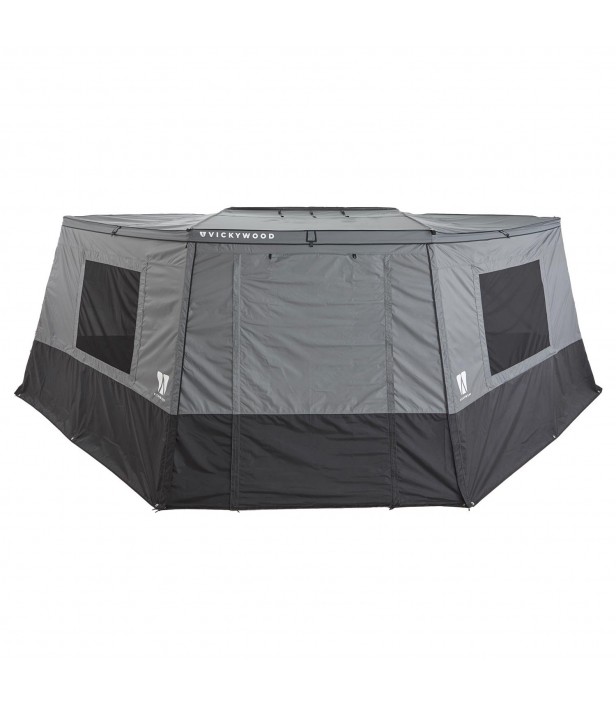 Le set de parois VICKYWOOD LEAF 180° permet d’étendre considérablement les possibilités de votre auvent latéral. Une fois installé, l’espace ombragé devient une zone protégée et polyvalente, idéale comme coin repas, vestiaire, espace de repos ou zone de couchage à l’abri des intempéries.