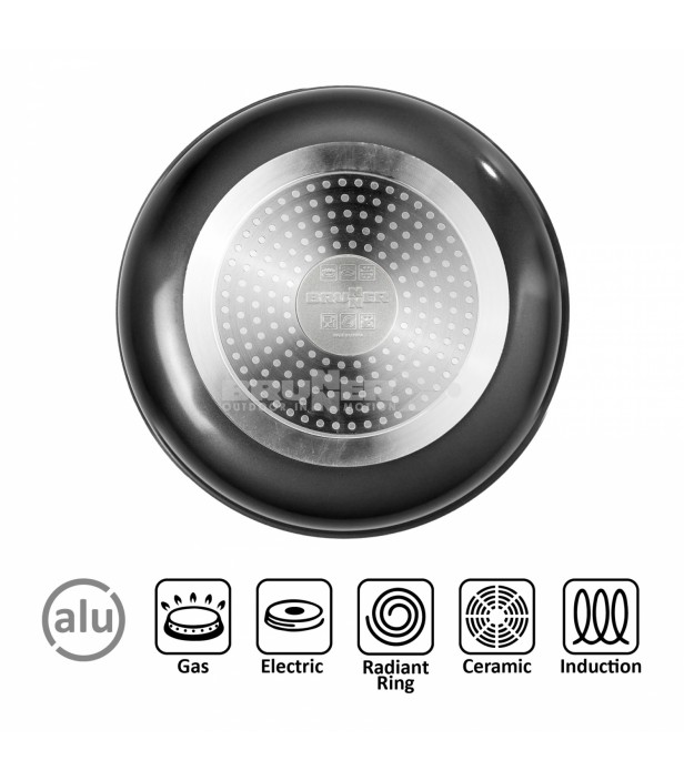 Le fond est compatible avec tous les types de plaques de cuisson, y compris l’induction, ce qui rend ce set polyvalent et utilisable aussi bien à la maison qu’en extérieur.