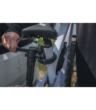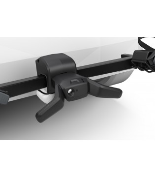 Sa plateforme fixe contribue à maintenir un poids réduit et un profil bas. Lorsque aucun vélo n’est monté, le coffre reste accessible sans devoir retirer le porte-vélos. Les bras de fixation indépendants avec tête pivotante s’adaptent à des cadres de 20 à 90 mm et assurent un maintien sécurisé pendant le transport.