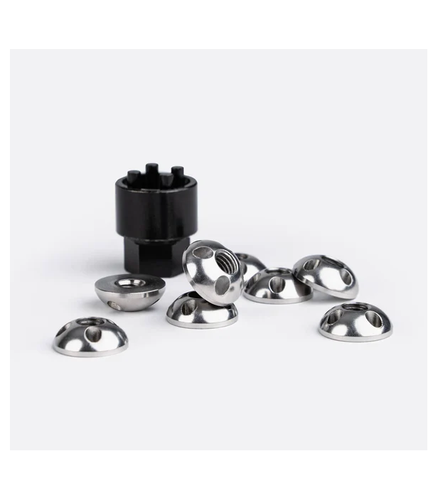 Chaque kit est fourni avec une douille dédiée, conçue pour s’adapter uniquement aux Security Nuts. Ces écrous ne peuvent pas être retirés avec une clé ou une clé plate standard, ce qui renforce considérablement la sécurité de votre installation.