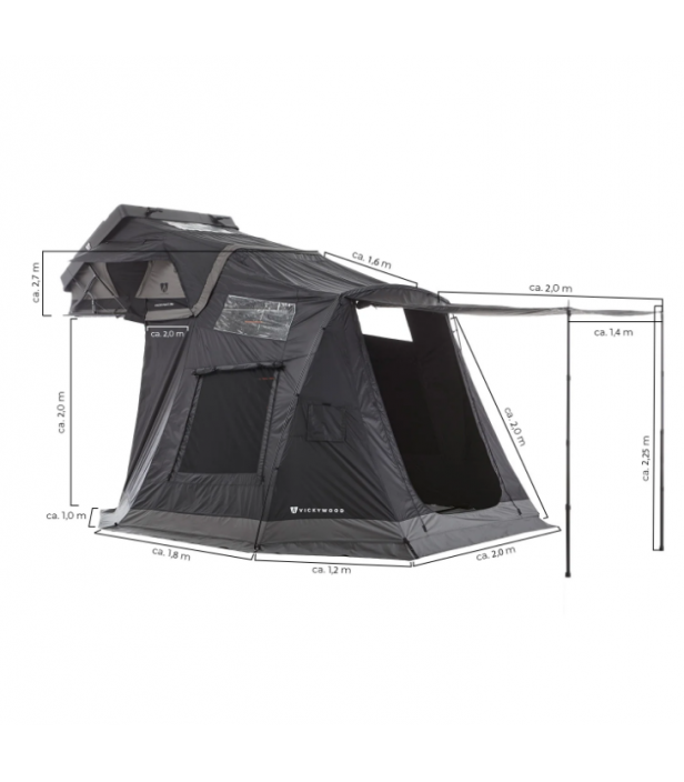 Annexe compatible avec la tente de toit Vickywood Hybrid Mighty Oak Light 165, idéale pour créer un espace protégé au sol à l’entrée de votre installation.