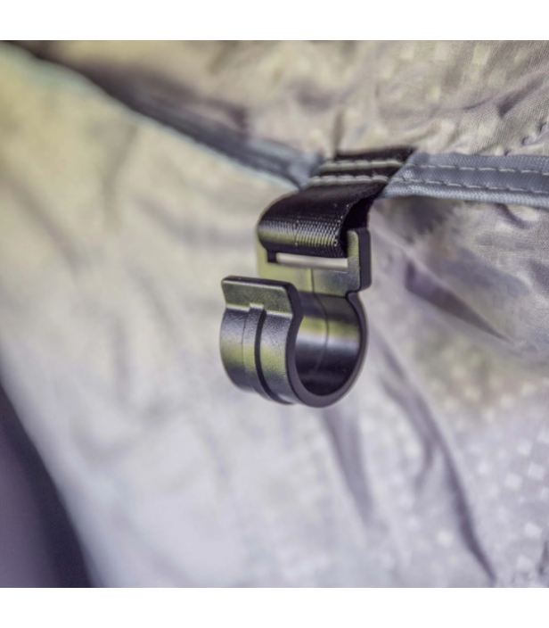 Facile à installer, elle se fixe rapidement à l’intérieur de la tente via les points d’accroche existants (crochets et tirettes), sans outil. Les ouvertures (portes et fenêtres) restent accessibles, ce qui permet de conserver toute la fonctionnalité de votre tente.