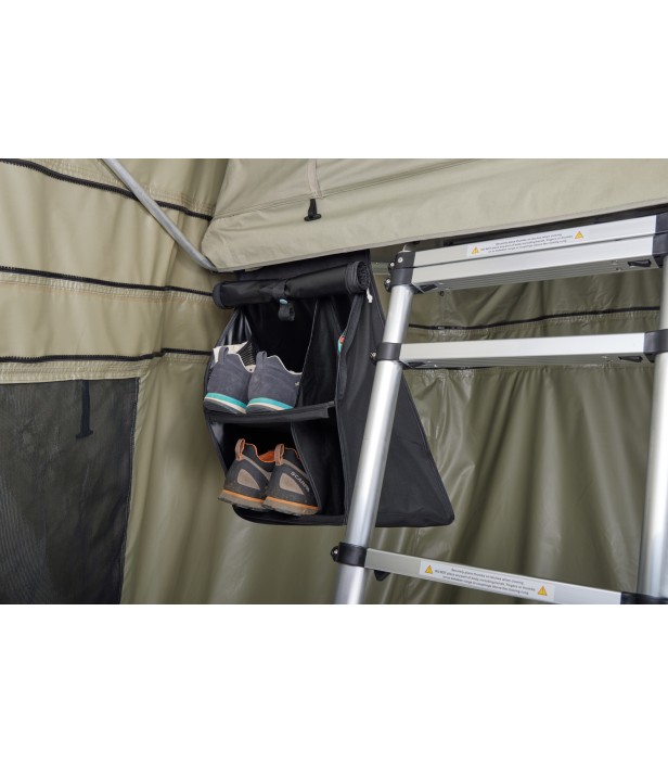 Facile à fixer sur l’échelle ou sous une TentBox Lite, il permet de ranger une paire de chaussures tout en favorisant leur séchage grâce à sa structure ventilée.