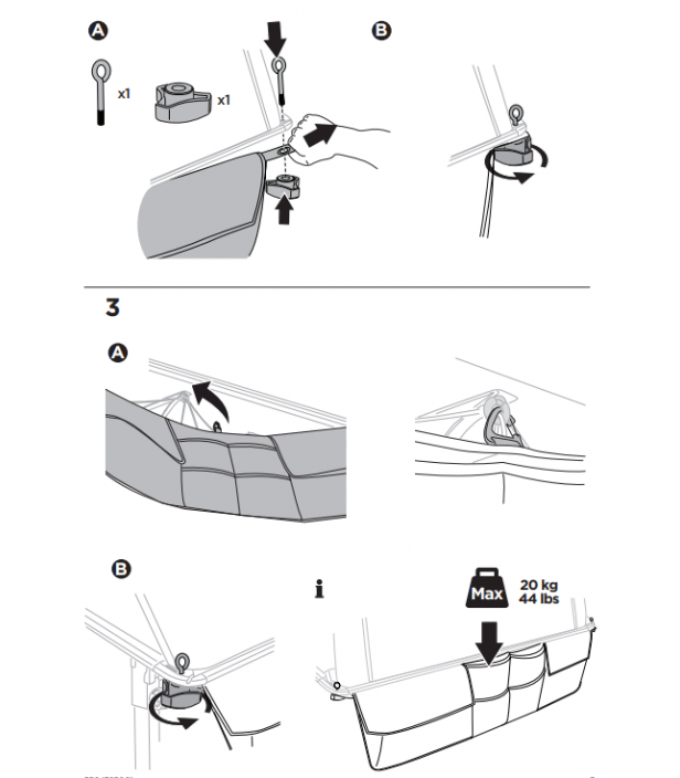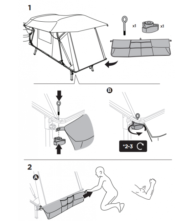 Important : l’organisateur doit être vidé avant le repli de la tente.