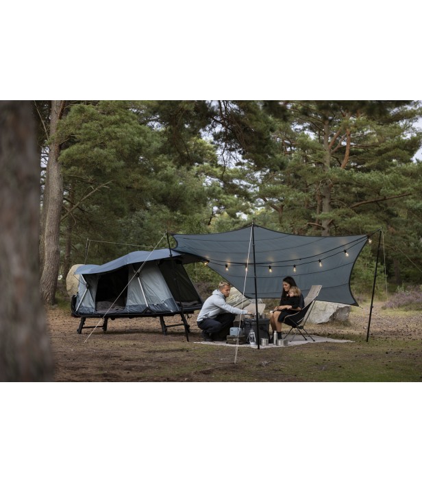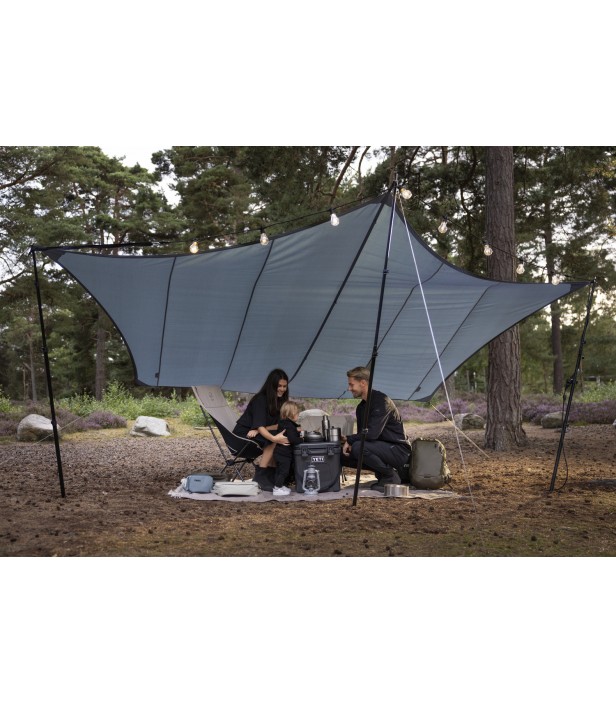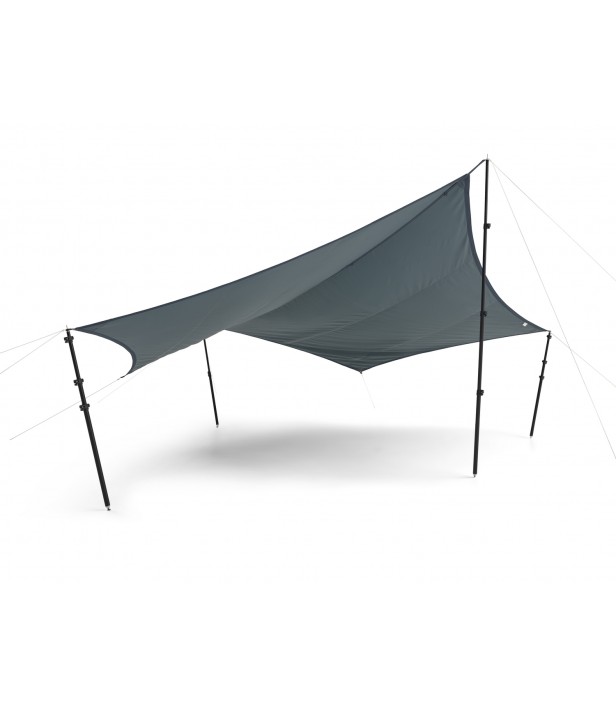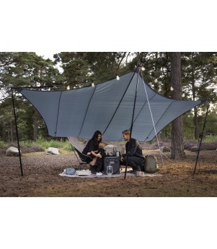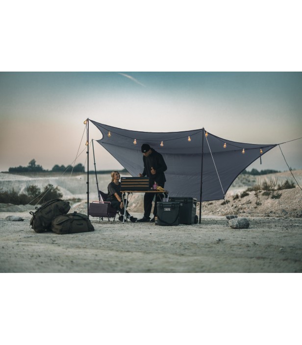 Grâce à sa configuration à quatre pôles, il offre une grande flexibilité d’installation. Vous pouvez adapter la forme du tarp en fonction du terrain, des conditions météo ou de votre installation, afin d’optimiser la protection contre le soleil, la pluie et le vent.
