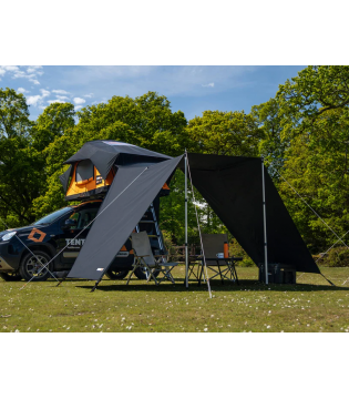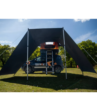 Le tarp pour tente de toit TentBox Lite 2.0 permet de créer un espace abrité directement à l’entrée de votre tente. Il protège efficacement du soleil, de la pluie et du vent, tout en conservant une installation rapide et légère.