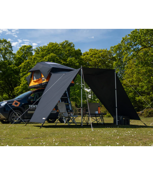 Une fois installé, il couvre l’échelle et crée un espace d’entrée protégé, idéal pour se changer, cuisiner ou enlever ses chaussures à l’abri avant de monter dans la tente. Le mode “wing-mode” permet également d’ouvrir les panneaux pour agrandir la zone couverte selon vos besoins.