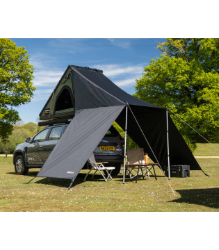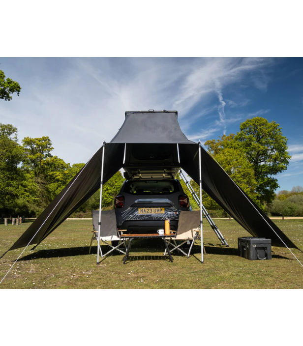 Le tarp pour tente de toit TentBox Cargo 2.0 permet de créer un espace abrité directement à l’entrée de votre tente. Il protège efficacement du soleil, de la pluie et du vent léger, tout en offrant une installation rapide et sans contrainte.