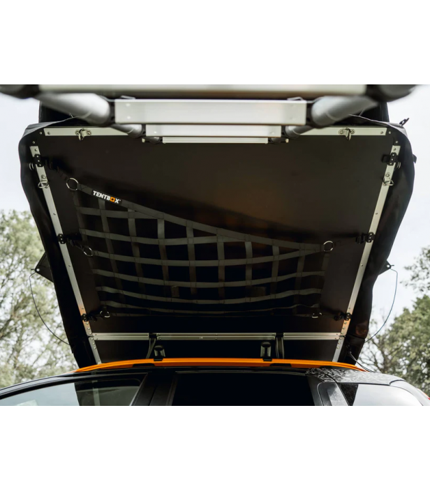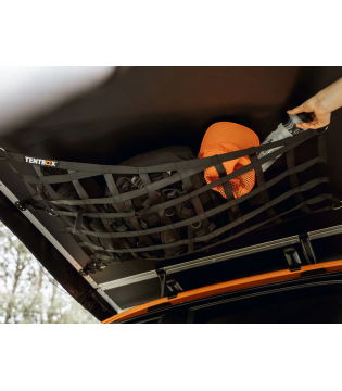 Le filet de rangement pour tente de toit TentBox Lite 2.0 et Lite XL permet d’optimiser l’espace disponible en créant une zone de stockage suspendue, idéale pour garder vos affaires organisées et accessibles.