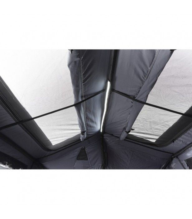 La marque allemande Vickywood propose des tentes de toit bien équipées dès l’origine. La Big Willow intègre un matelas mémoire de forme de 6 cm, un tapis anti-condensation, ainsi qu’un éclairage LED intérieur dimmable.